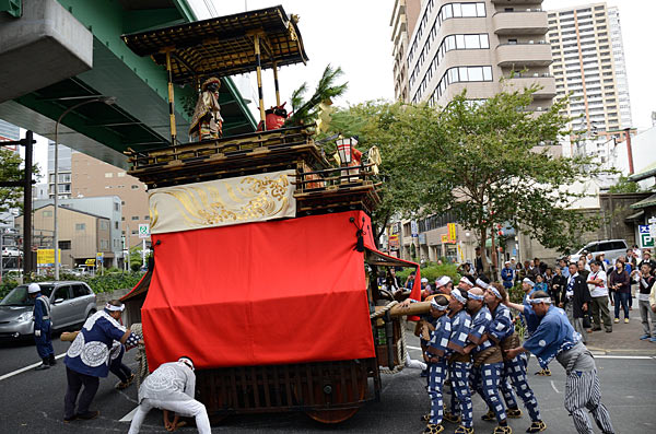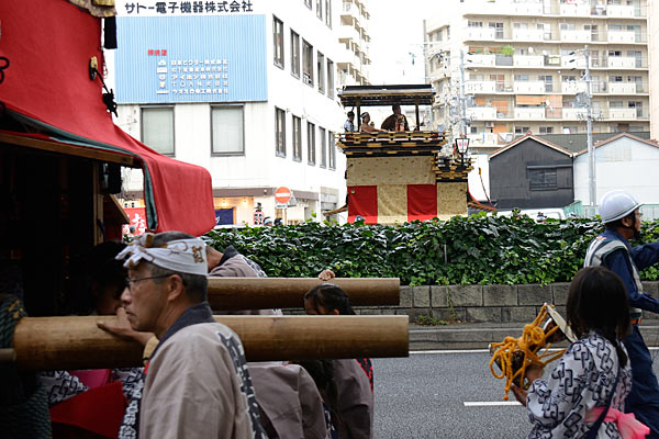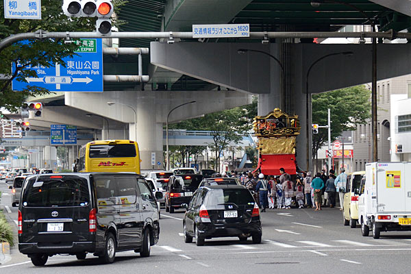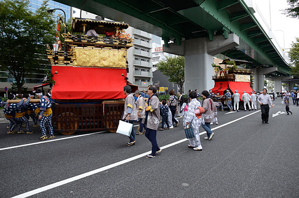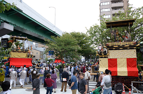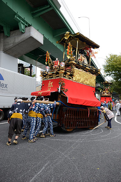 奉納を終えて紅葉狩車、二福神車が戻ります.