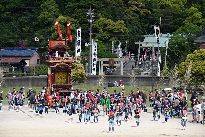 東組「宮本車」が国道を横断して海浜公園に入ってきました