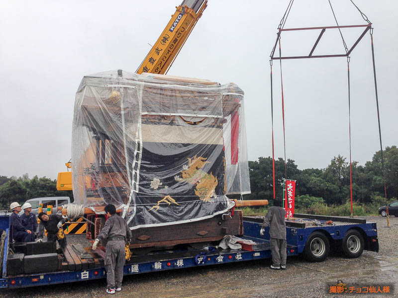 奥田地区南組南車はトレーラーで