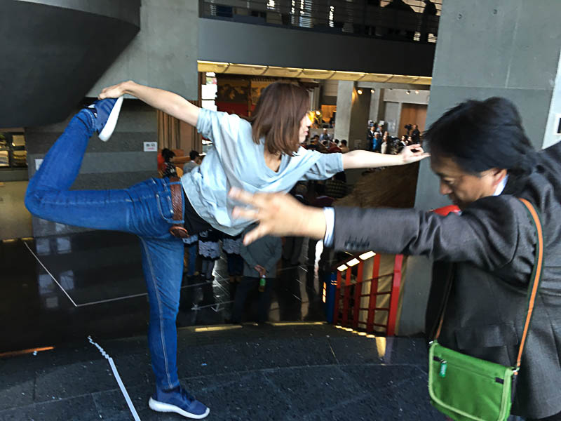階段の踊り場で踊る?
