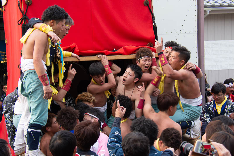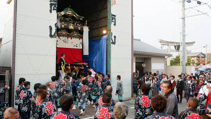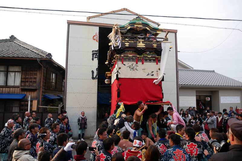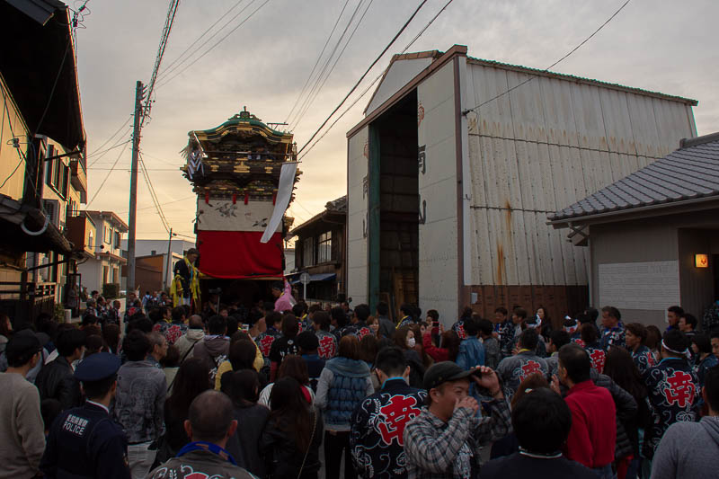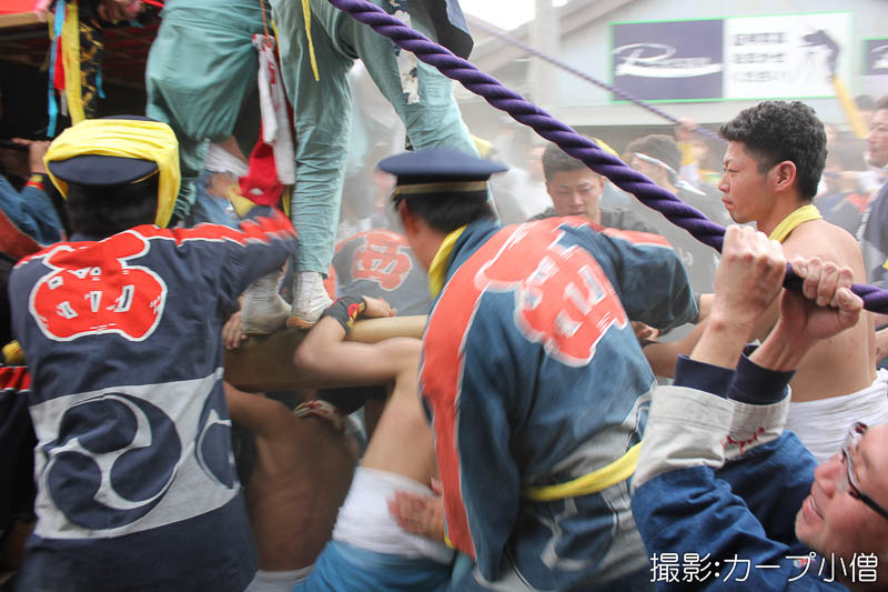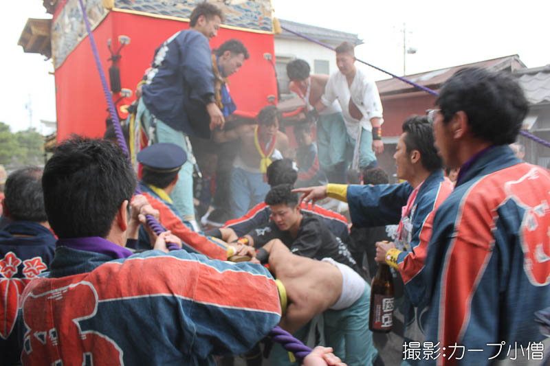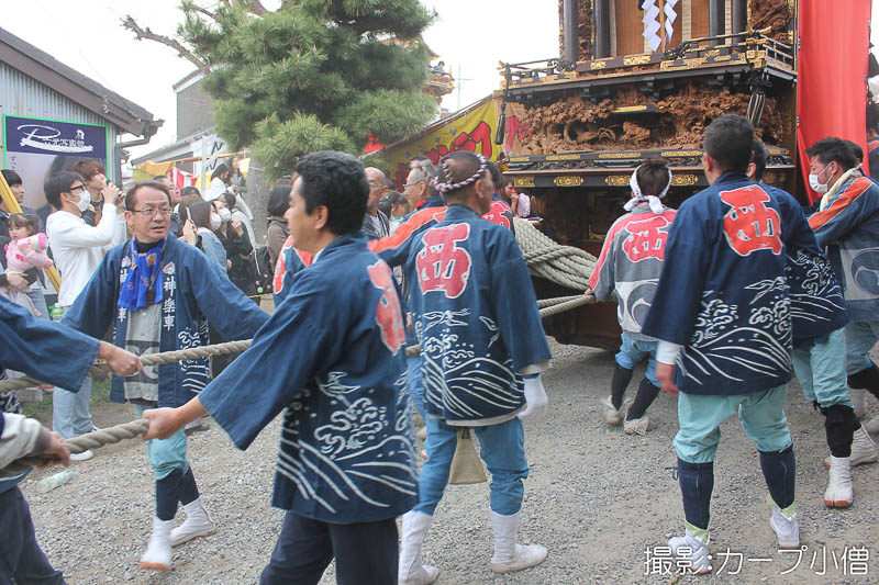西山神楽車の坂下ろし
