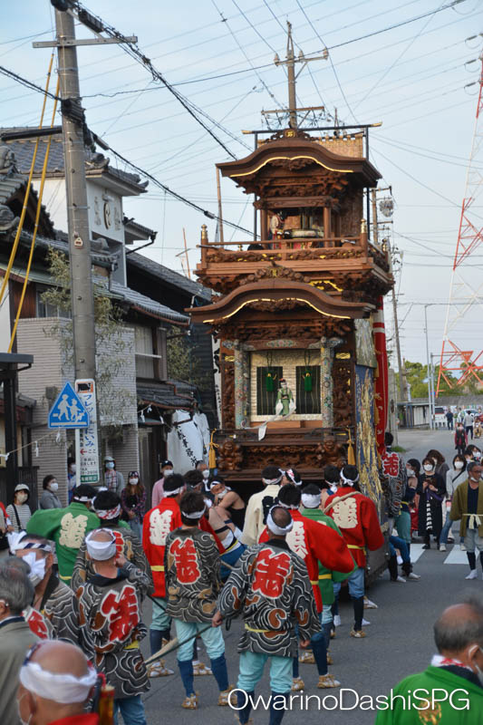 神前神社から戻ってきた石橋組青龍車