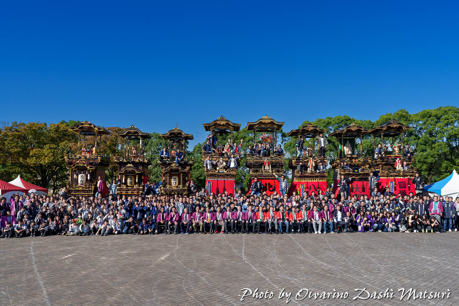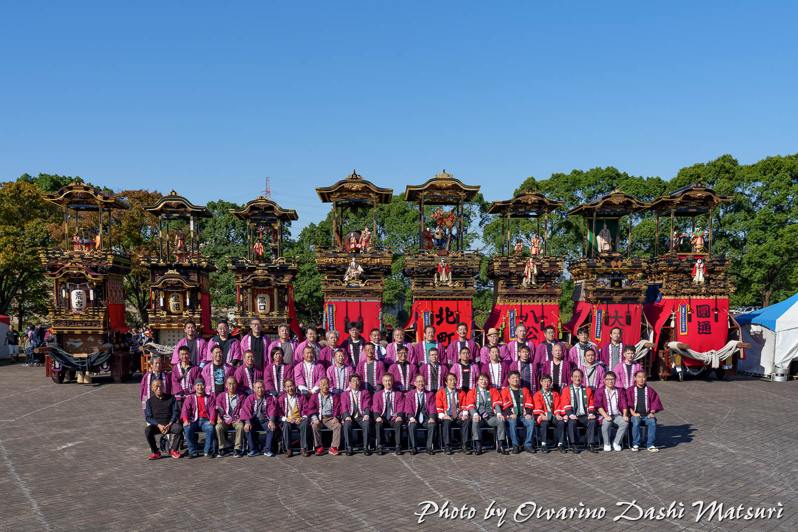 山車列の前で記念撮影