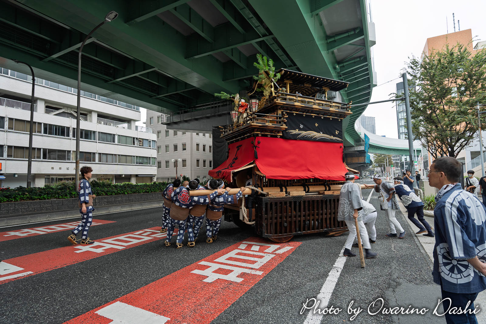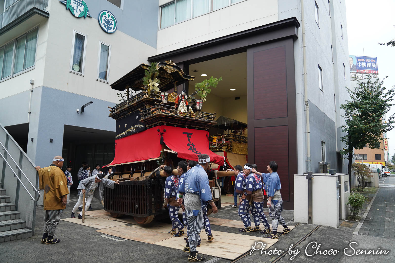 曳き出す前の儀式はコンパネ敷き