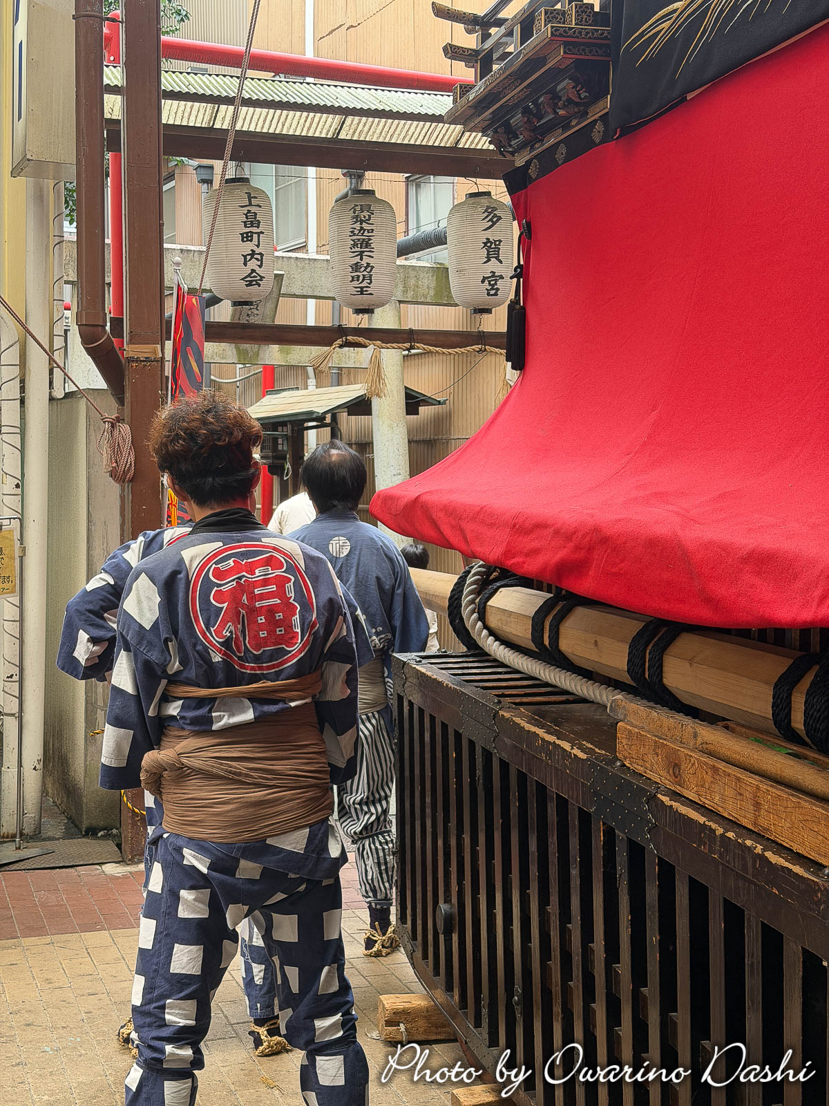 例年ですと、このまま神明社に戻り休憩後に柳里神社への曳行になるのですが、ここで昼の休憩となりました。