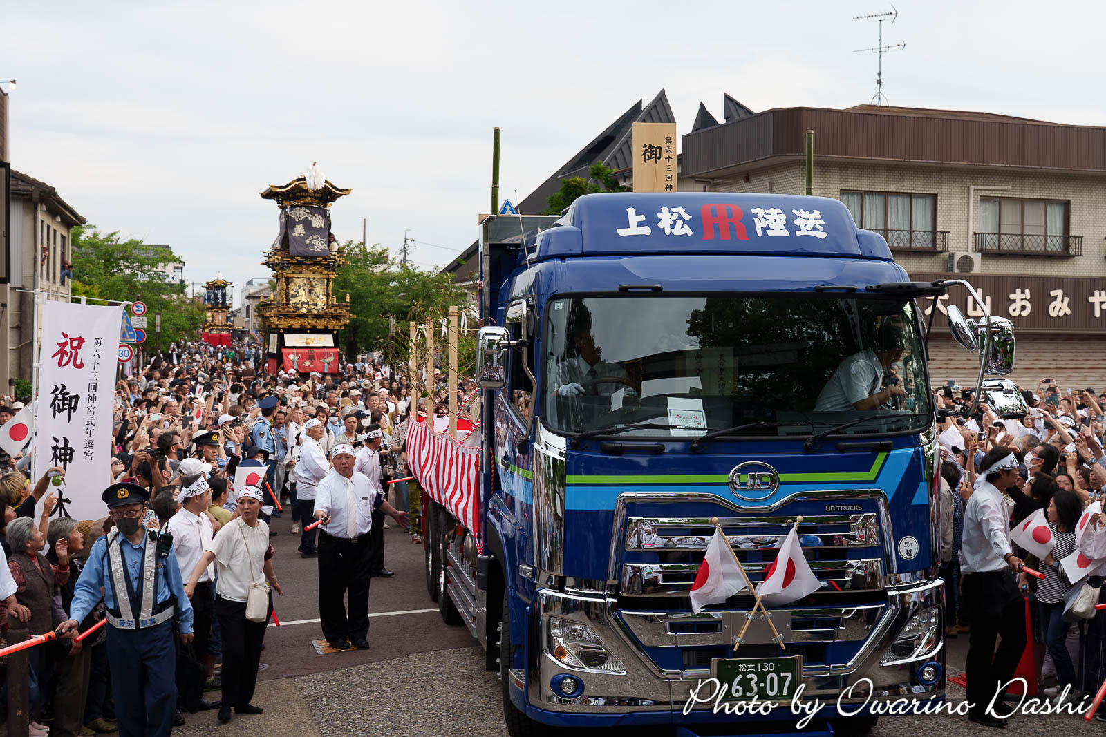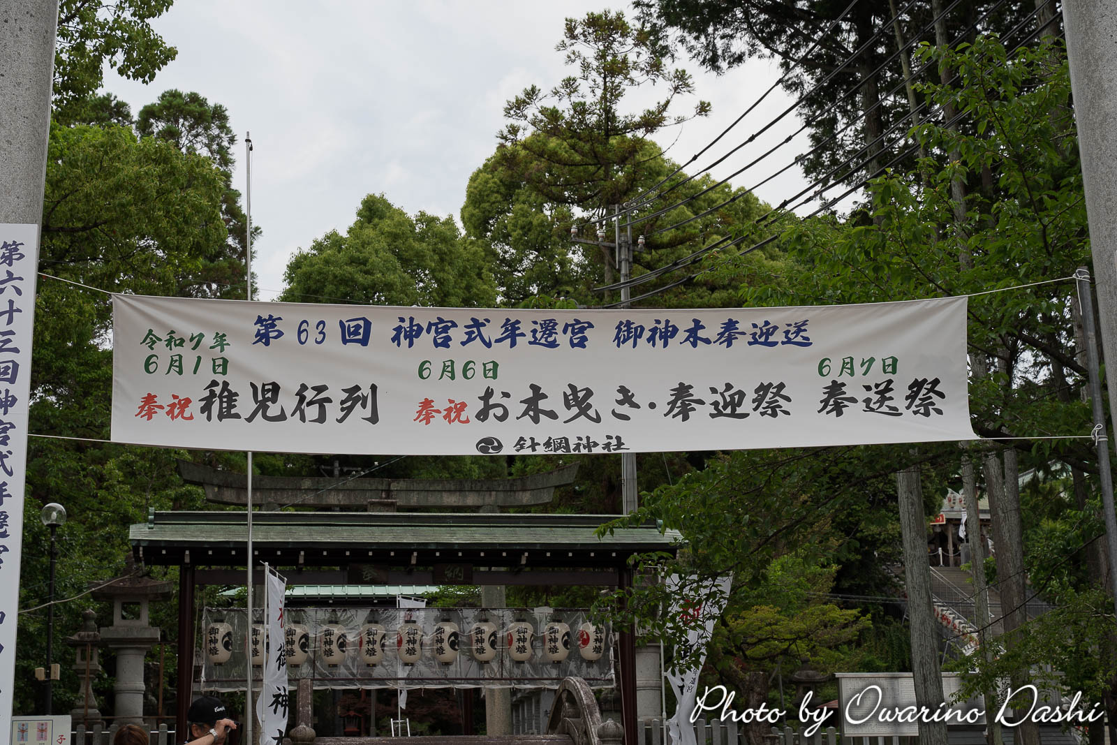 長野県上松町で切り出された御神木が、令和7年6月6日に愛知県犬山市の針綱神社に迎えられ、犬山城下の本町通りで「お木曳き」行事が行われました。