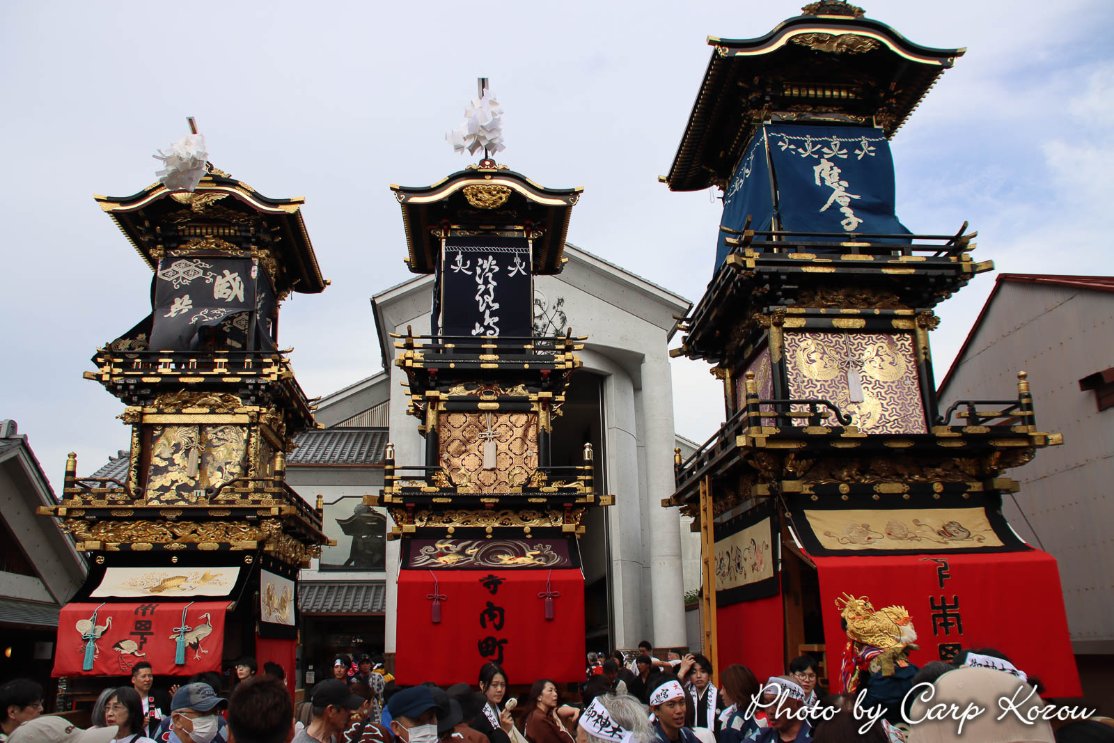 犬山祭の車山6輌が、御神木に前後して供奉しました。